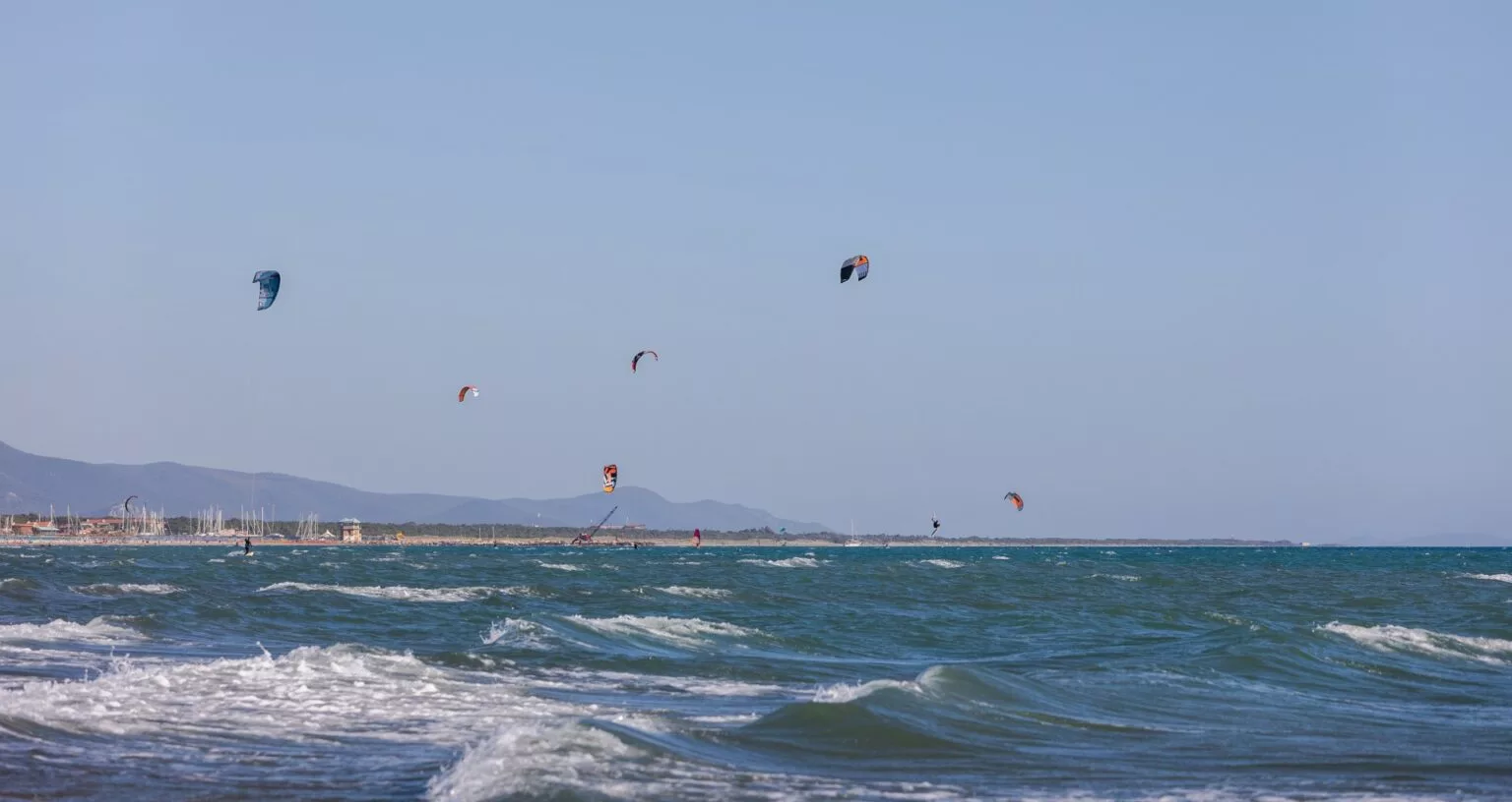 Kitesurfen in der toskanischen Maremma ist eine der vergnüglichsten Aktivitäten, die in diesem suggestiven Teil der Halbinsel praktiziert werden können, der in eine Traumlandschaft eingebettet ist, die von einem kristallklaren Meer geprägt ist.